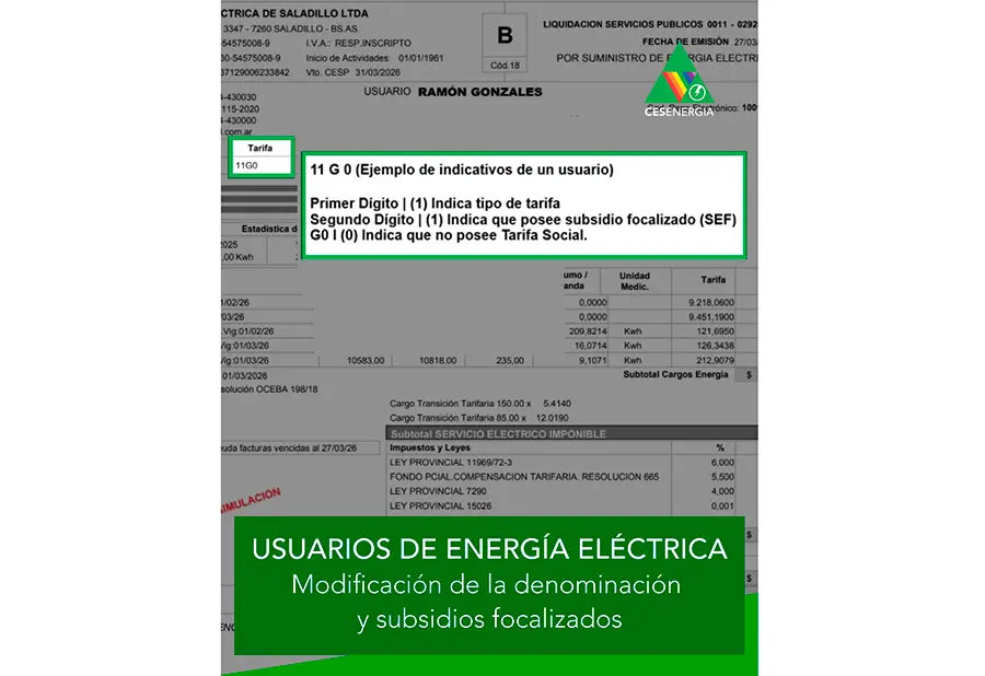 Usuarios de energía eléctrica | Modificación de la denominación y subsidios focalizados